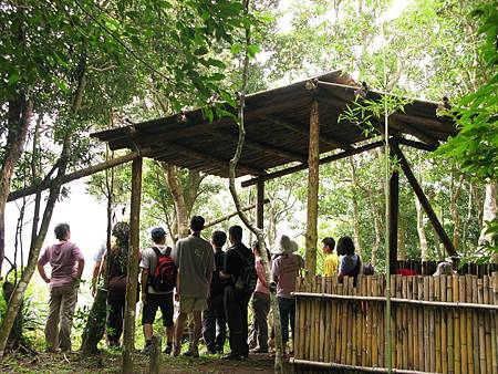 九點一到,兩點鍬 大聲吆喝『生態導覽』即將開始,於是眾人慢慢向竹屋集結,準備聽取營地主人 李大哥 分享北得拉曼營區的生態環境。