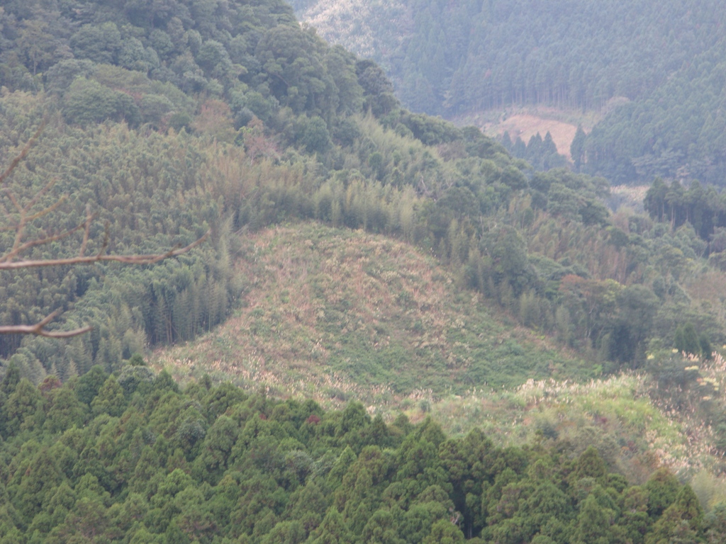 偶然發現,在對面山坡開墾後,呈現一個心型圖案