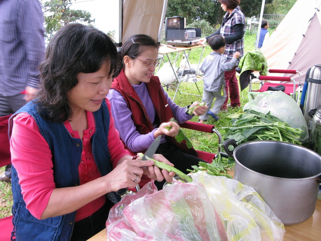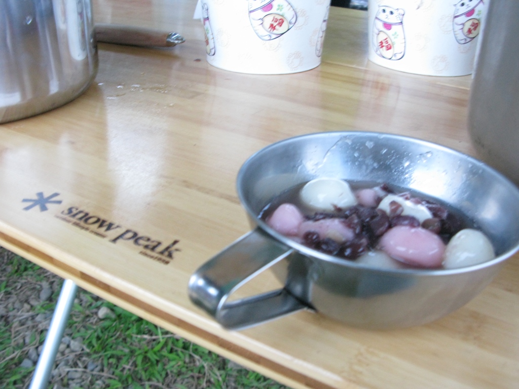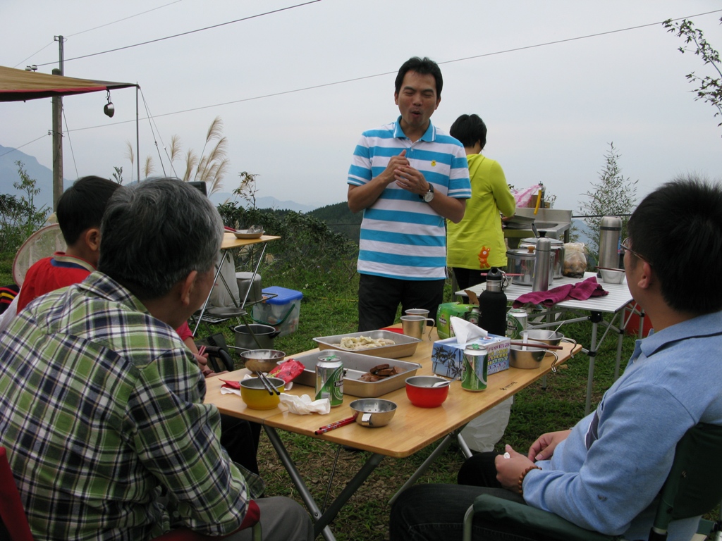 由於到達營地時已過中午,一行人早已飢腸轆轆,趕緊先上桌椅直接來個露天午宴,再弄一些簡單上桌的食物來填補肚子,有佛跳牆、水餃、乾麵、雞湯、滷味 (這這這這哪裡算是簡單的午餐阿,這太豐盛了吧)